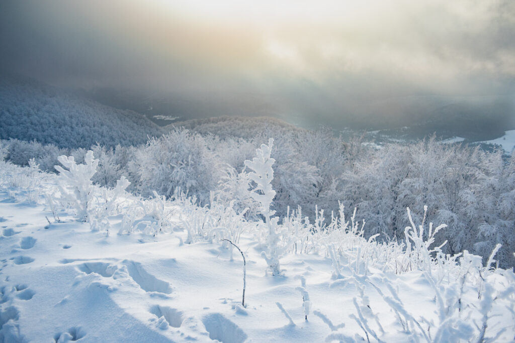 Bieszczady w zimie i śniegu z bandą dzieciaków to nie jest czas na jakieś niesamowite wędrówki. Chociaż nie, wędrówki były niesamowite, ale bardziej za sprawą zimowej baśniowej aury, niż trudności czy czasu trwania. Zima malowała co chwilę inne obrazy, jeden piękniejszy od drugiego. Gdy szło się w górę, piękno eskalowało, a rzeczywistość z każdym metrem robiła się coraz bardziej baśniowa. Zobaczcie.